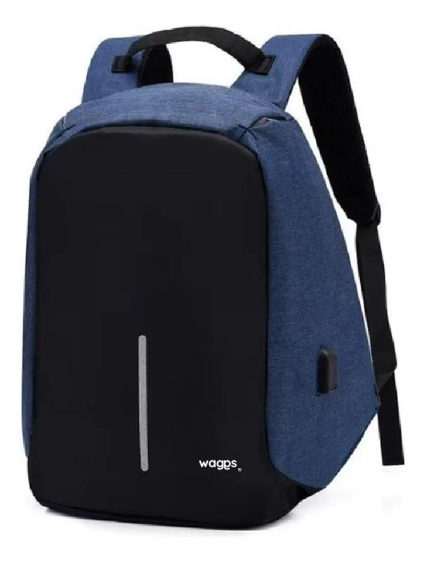 MOCHILA ANTIRROBO WAGGS URBANA PORTA NOTEBOOK 30 LITROS CON CABLE USB AZUL