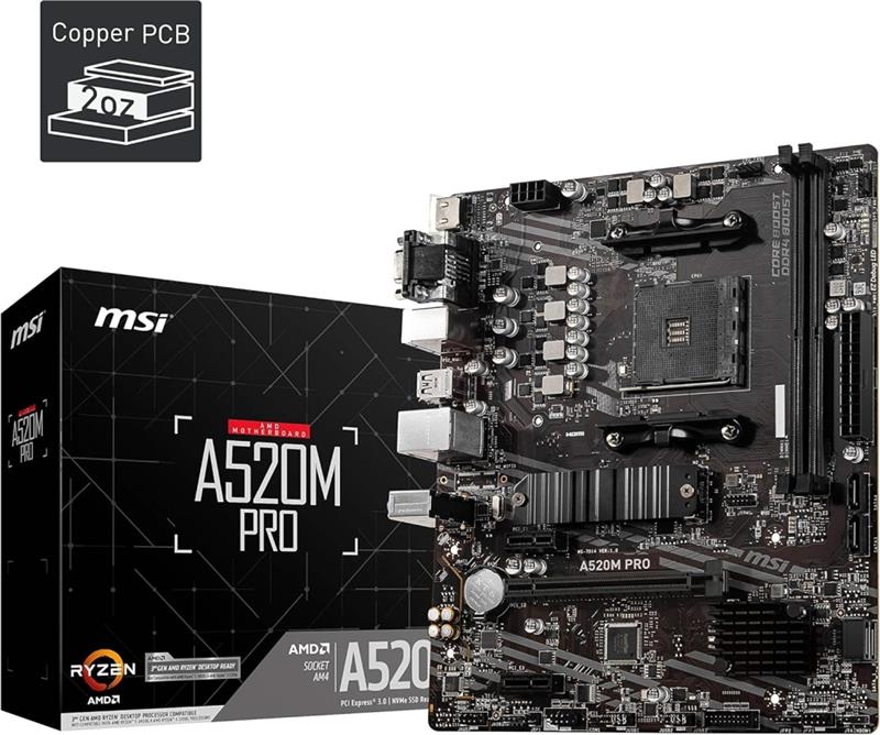 MOTHER AM4 DDR4 MSI A520M PRO DDR4 RAMX2 NVMEx1 DVI HDMI